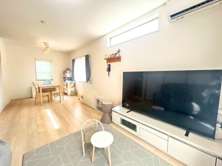 大きなテレビも置けるワイドなリビング!ゆったりとしたソファでくつろげますね。