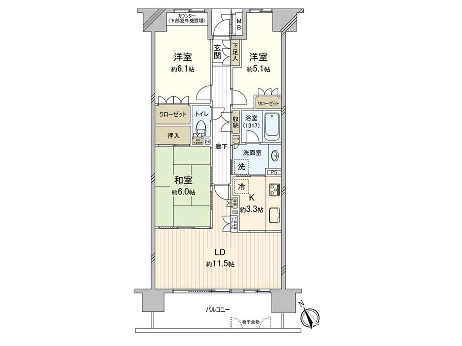 販売戸数/総戸数 | 1戸/45戸 | 主要採光面 | 南西 | ||