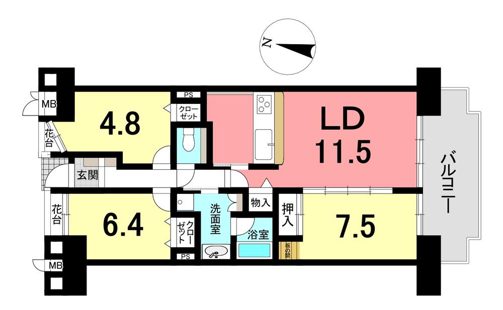 販売戸数/総戸数 | 1戸/115戸 | 主要採光面 | 南 | ||