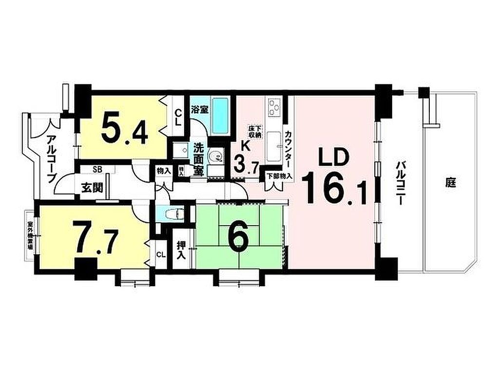 | 建物構造 | SRC(鉄骨鉄筋コンクリート) | 間取り詳細(帖) | リビングダイニング 16.1帖(1階)キッチン 3.7帖(1階)和室 6畳(1階)洋室 7.7帖(1階)洋室 5.4帖(1階) | ||