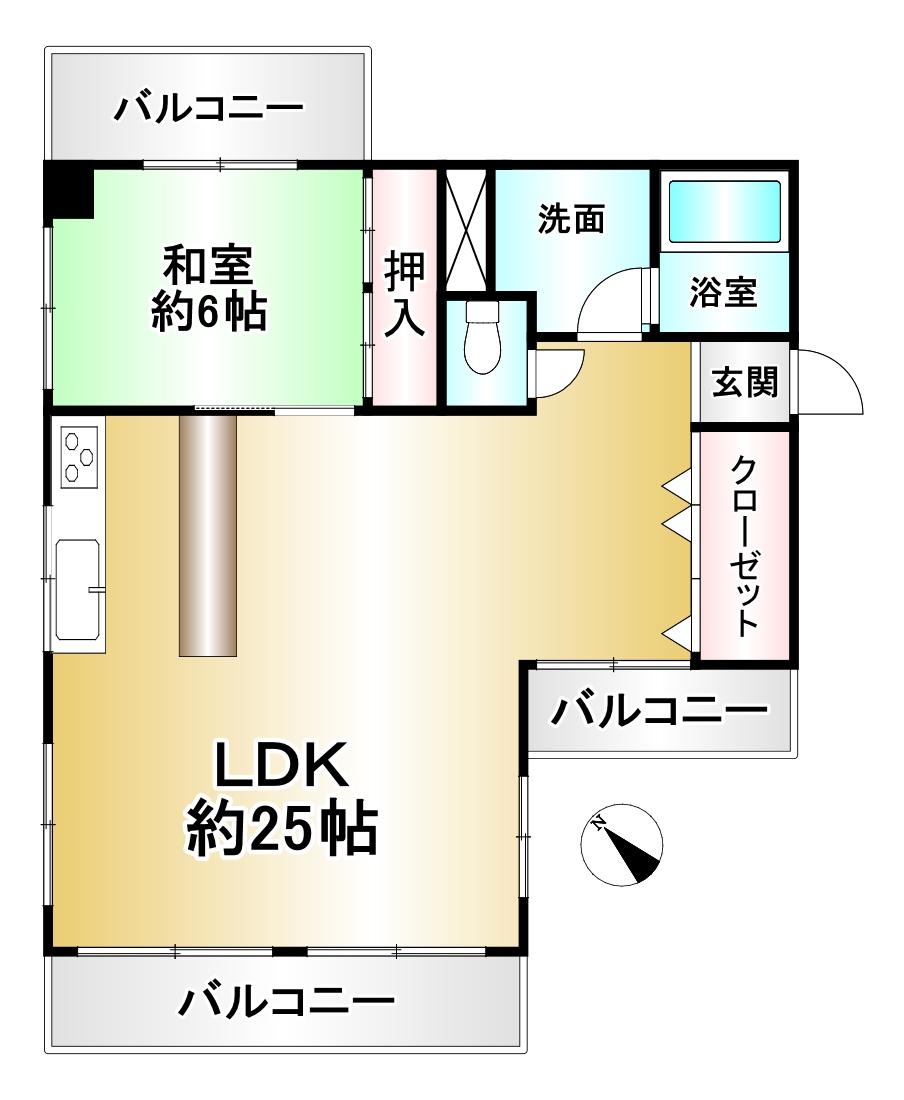 販売戸数/総戸数 | 1戸/18戸 | 主要採光面 | 南西 | ||