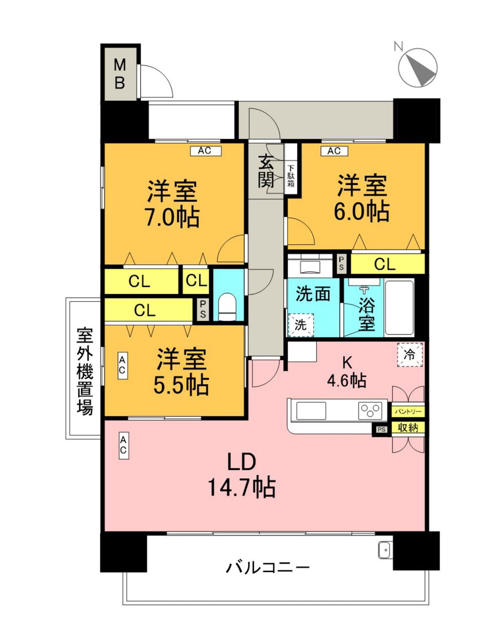 | 販売戸数/総戸数 | 1戸/22戸 | 主要採光面 | 南 | ||