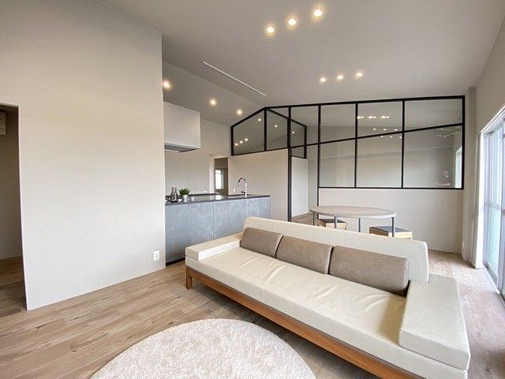 勾配天井で空間にゆとりが感じられ、お洒落なFIX窓を採用した室内は開放感もありリビングも広く感じられます。