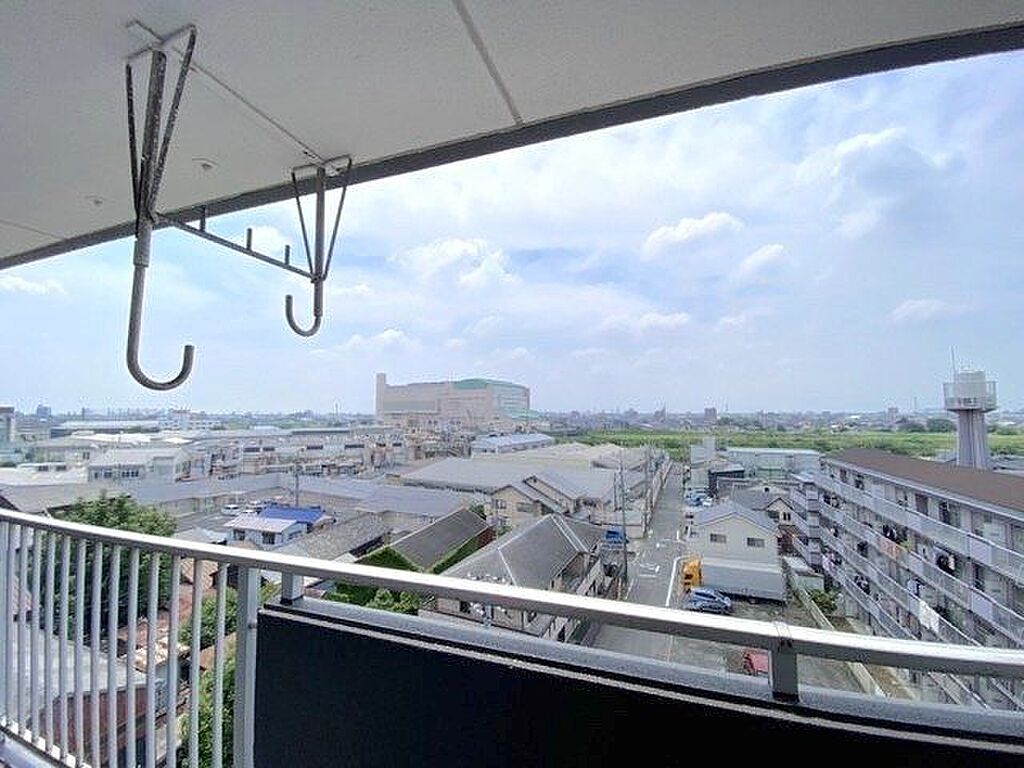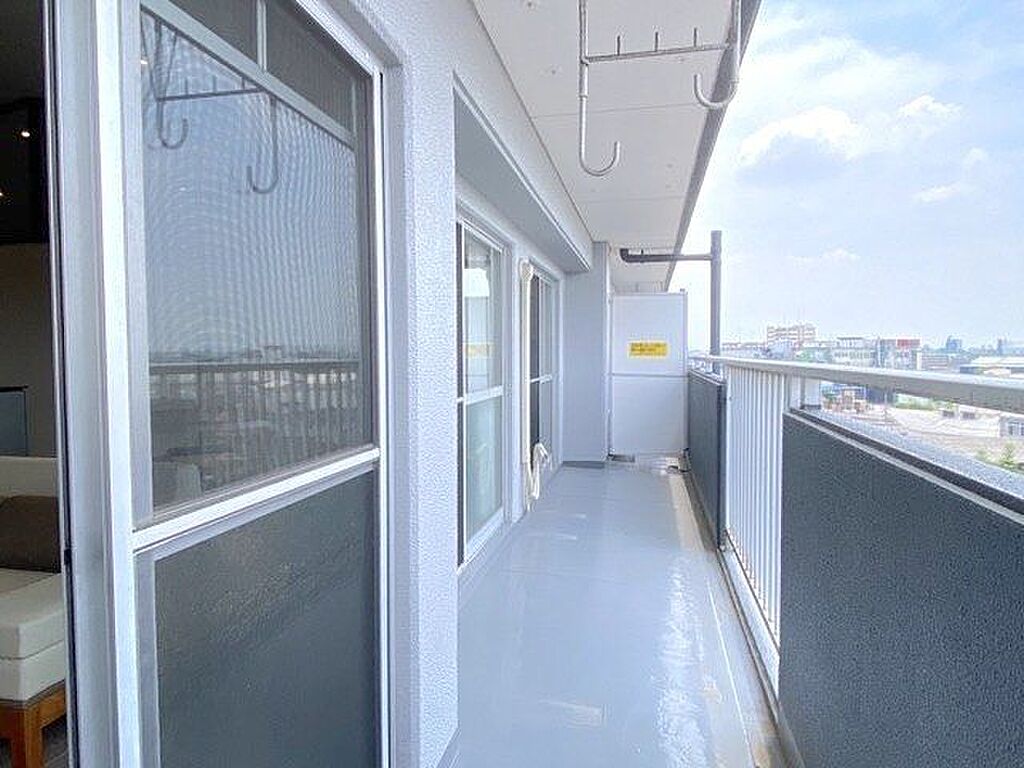 南に面したバルコニーは、お洗濯物もよく乾きそうですね。ワイドなバルコニーで洗濯物が沢山あっても安心ですね。前面にさえぎる建物が無く日当たり良好です♪