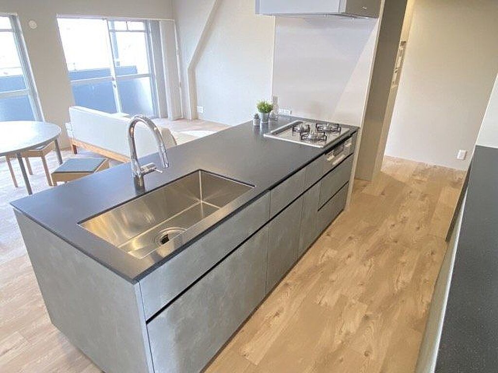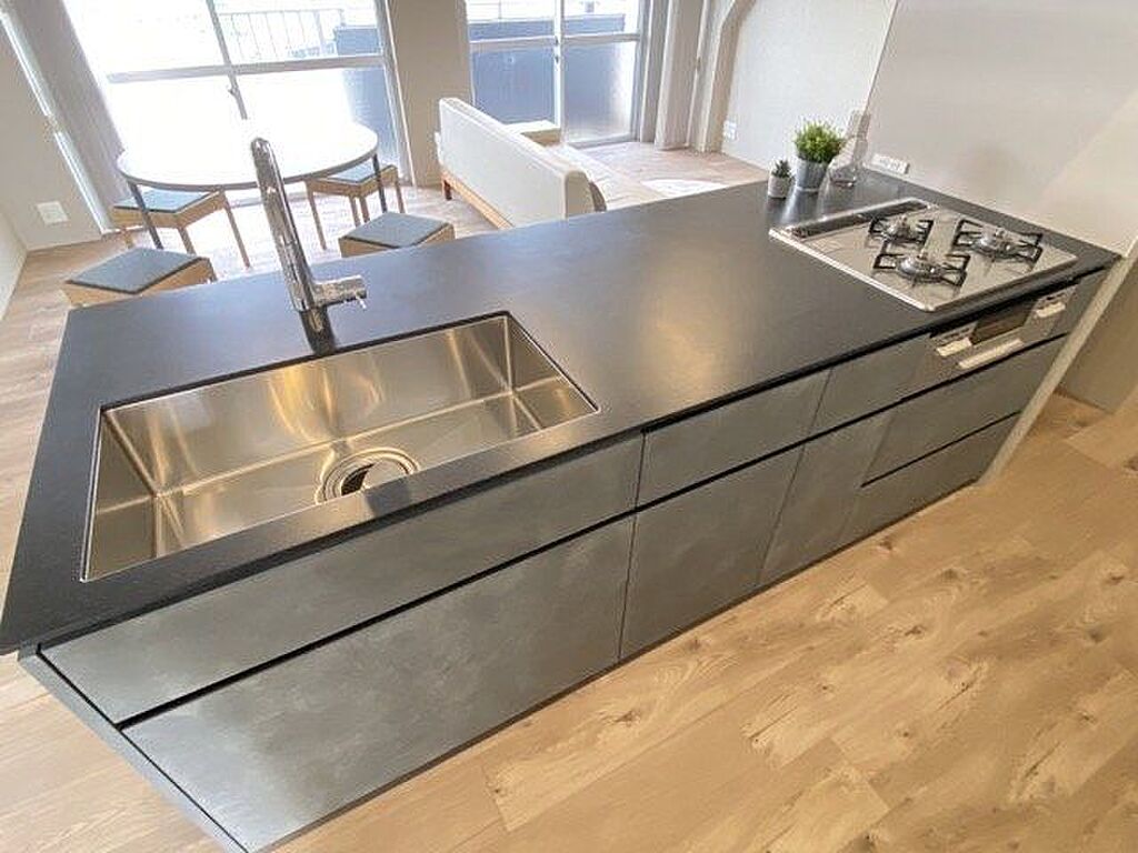 ガスコンロ3口です。一度にたくさんのメニューが作れます!家事もはかどりそうです♪キッチンからリビングが見渡せるので、料理をしながらでもお子さんに目が届きそうですね。