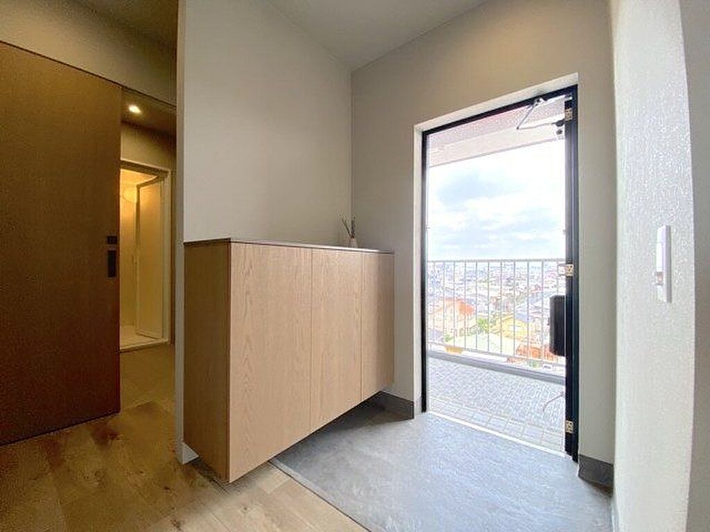 玄関は収納力のあるシューズボックス付きです!空いている部分にお花や家族写真など飾れそうです。
