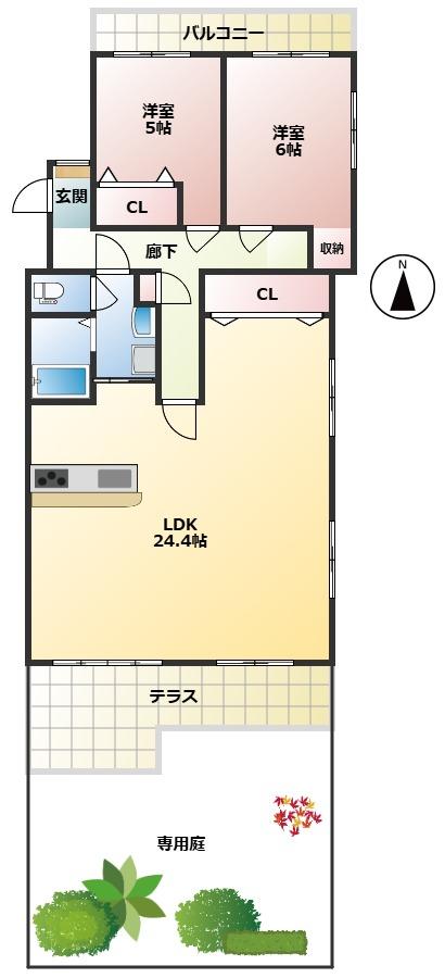 物件名 | グリーンコーポ江南1階!水回りすべて新品交換!24帖の広々リビングの2LDK!専用庭ありま | ||||