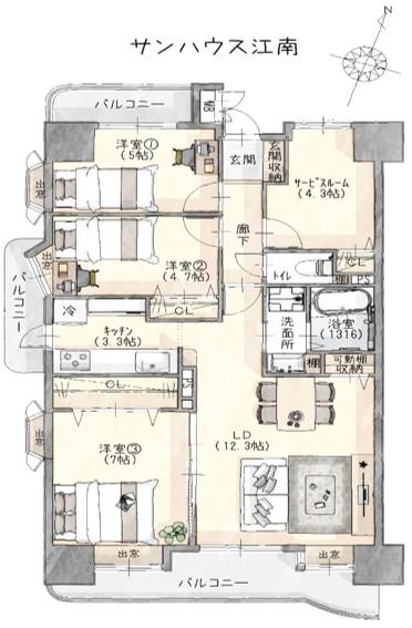 物件名 | サンハウス江南【リノベーション済×角部屋】 | ||||