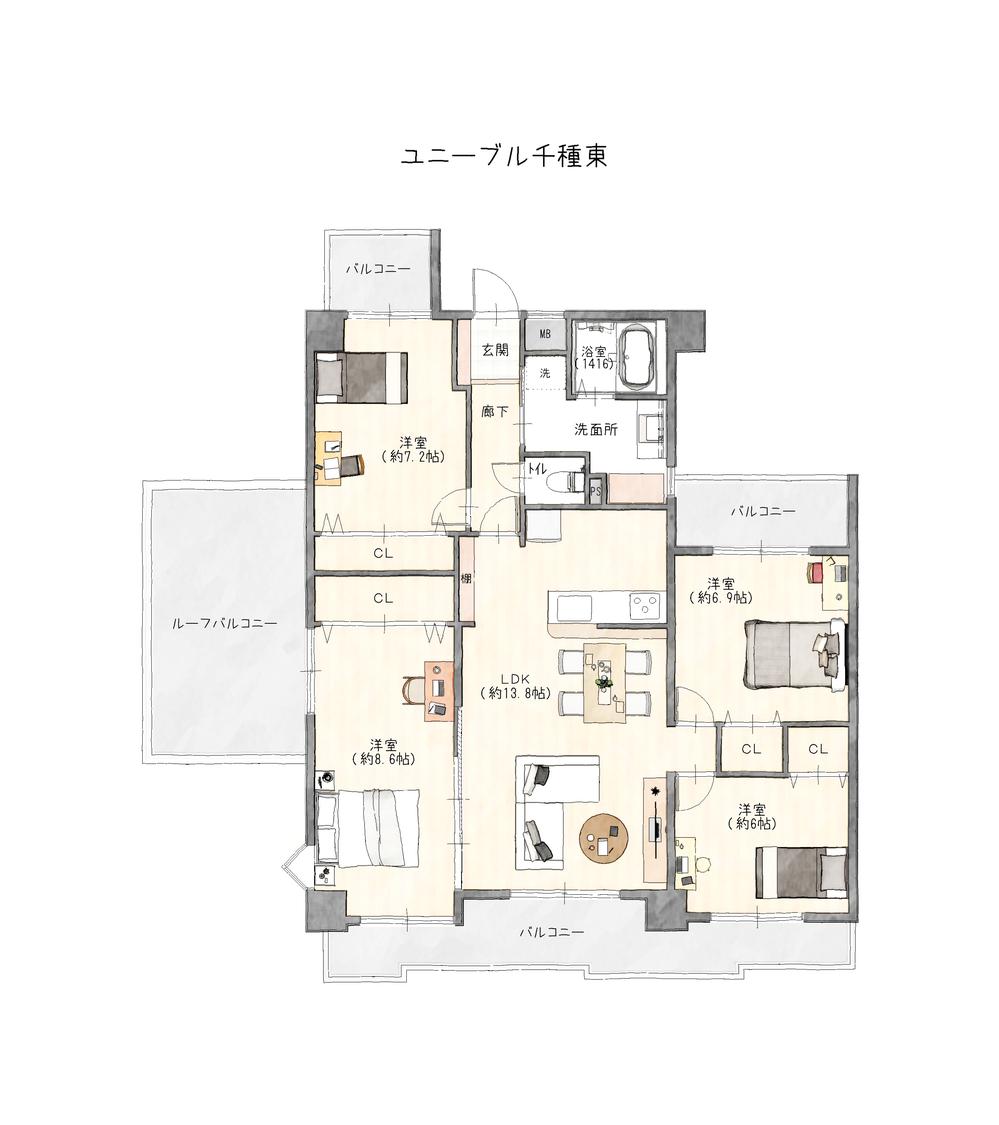 | その他面積 | バルコニー面積:15.06㎡、ルーフバルコニー:11.76㎡(使用料300円/月) | 土地権利 | 所有権 | ||