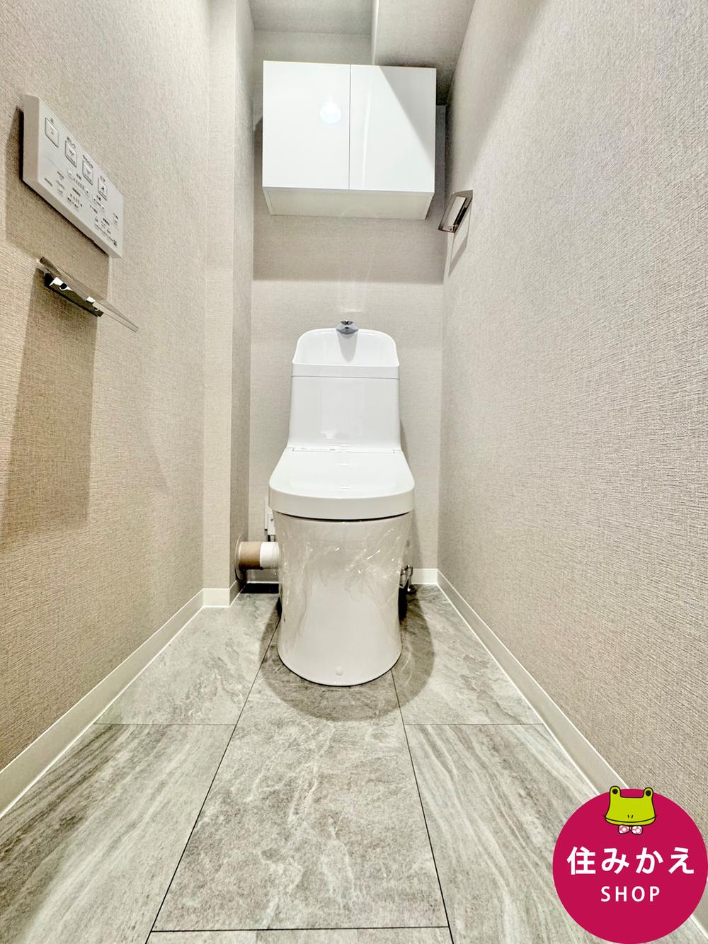 トイレは使い勝手の良い温水洗浄便座付きトイレを設置しております。収納棚もあるため、トイレットペーパーのストックや掃除道具を収納することができます。室内(2025年9月)撮影