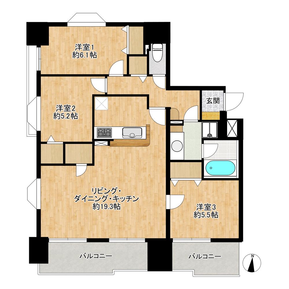 3LDK、価格2990万円、専有面積80.79㎡、バルコニー面積11.55㎡ 専有面積80㎡にLDk約19帖の家族で住みよい広々とした充実空間。各居室に収納もあり、荷物が多くても安心の住まい。