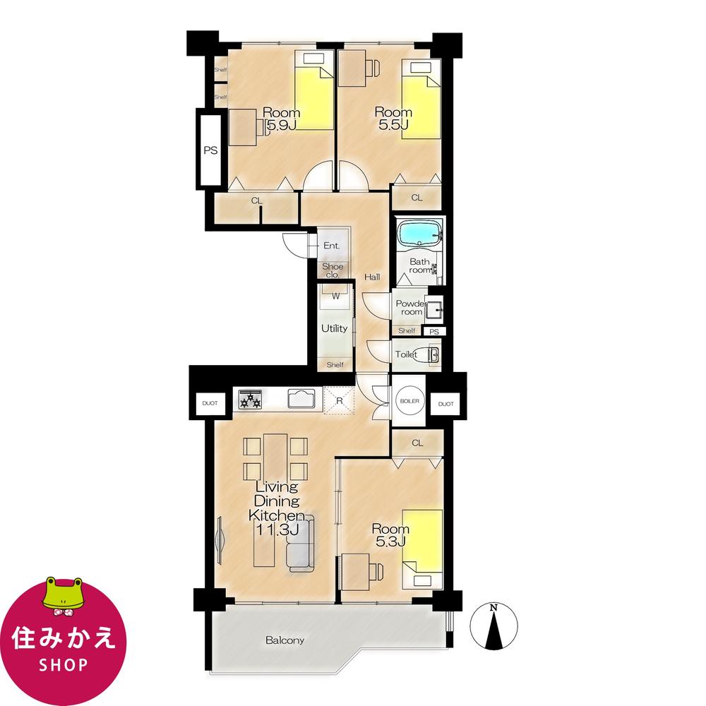 | 販売戸数/総戸数 | 1戸/95戸 | 主要採光面 | 南 | ||