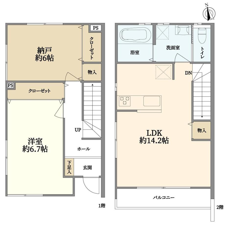 販売戸数/総戸数 | 1戸/2戸 | 主要採光面 | 南 | ||