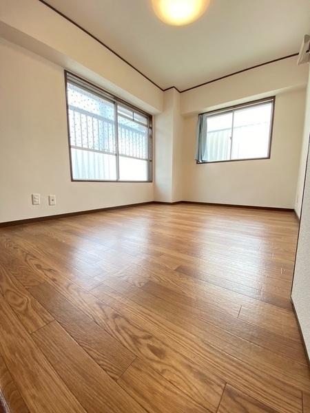 室内はさまざまなテイストの家具と調和するシンプルな内装。南側はバルコニーに面し、開放感があります。【南側約6帖洋室】(2024年09月撮影)