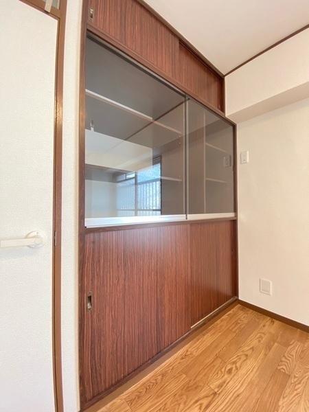 北側約6帖の洋室に備わる飾棚です。見せる収納と隠す収納をバランス良く活用し、暮らしに彩りを添えます。【収納/北側約6帖洋室】(2024年09月撮影)