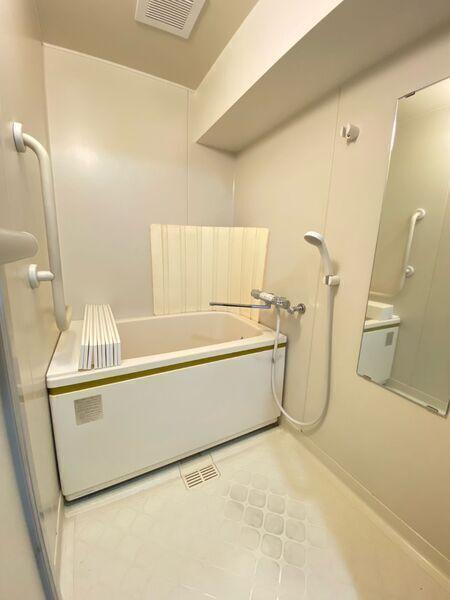 一日の疲れを癒す浴室は、明るい色調でまとめられています。立ち座りをサポートする手摺が備わっています。【浴室】(2024年09月撮影)