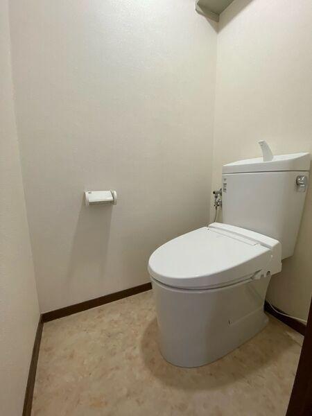 白を基調とした清潔感のあるトイレです。温水洗浄便座付きなので、毎日快適にご使用いただけます。【トイレ】(2024年09月撮影)