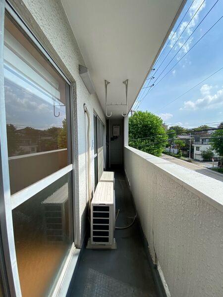 LDKと洋室に面した南向きのバルコニー。採光・通風良好で、洗濯物が早く乾きそうです。物干し金物付き。【バルコニー】(2024年09月撮影)