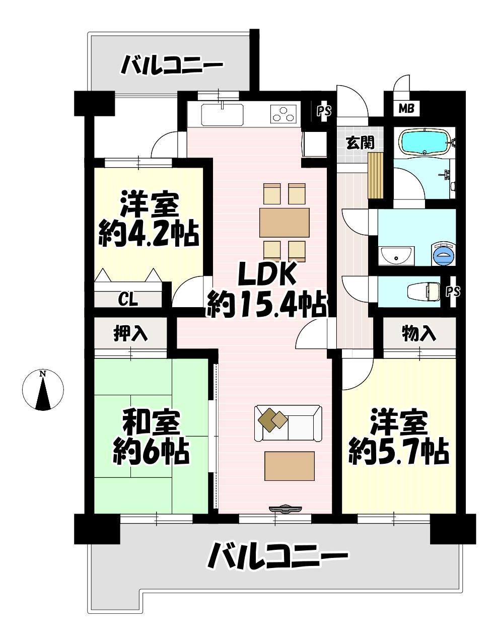 | 販売戸数/総戸数 | 1戸/53戸 | 主要採光面 | 南 | ||
