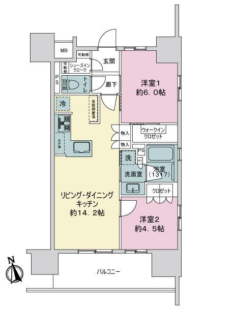 | 販売戸数/総戸数 | 1戸/42戸 | 主要採光面 | 南 | ||