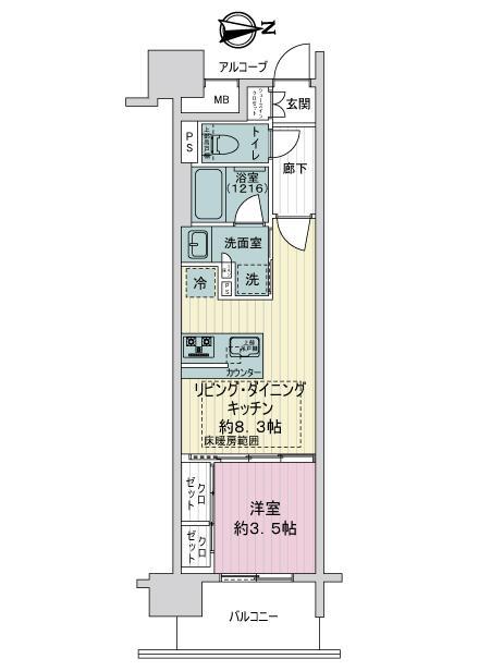 | 販売戸数/総戸数 | 1戸/98戸 | 主要採光面 | 東 | ||