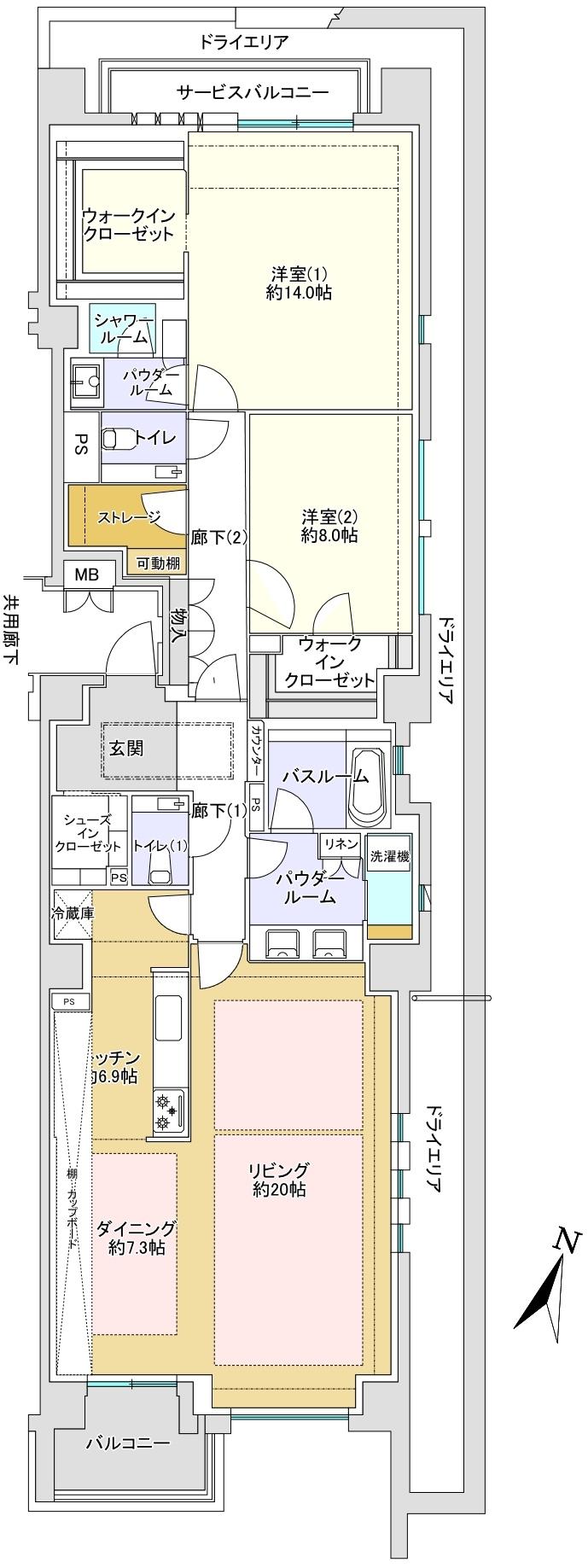 | 駐車場 | 専用使用権付駐車場(2万3000円/月) | 用途地域 | 1種中高、1種低層 | ||