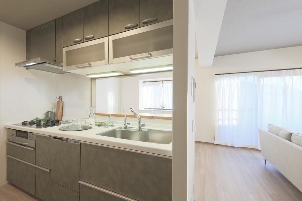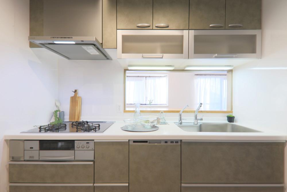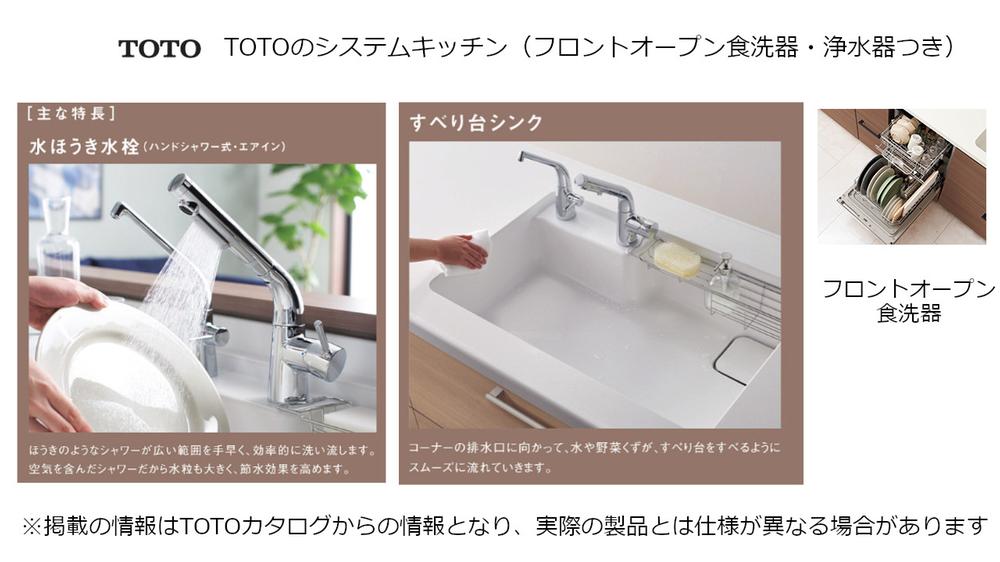 既存のキッチンはTOTOで、水ほうき水栓(まるでほうきの様な幅広シャワーが特徴で、広範囲に水が当たるため汚れを落としやすく、洗い物の時間を短縮できる水栓)、浄水器、フロントオープン食洗器つきです。