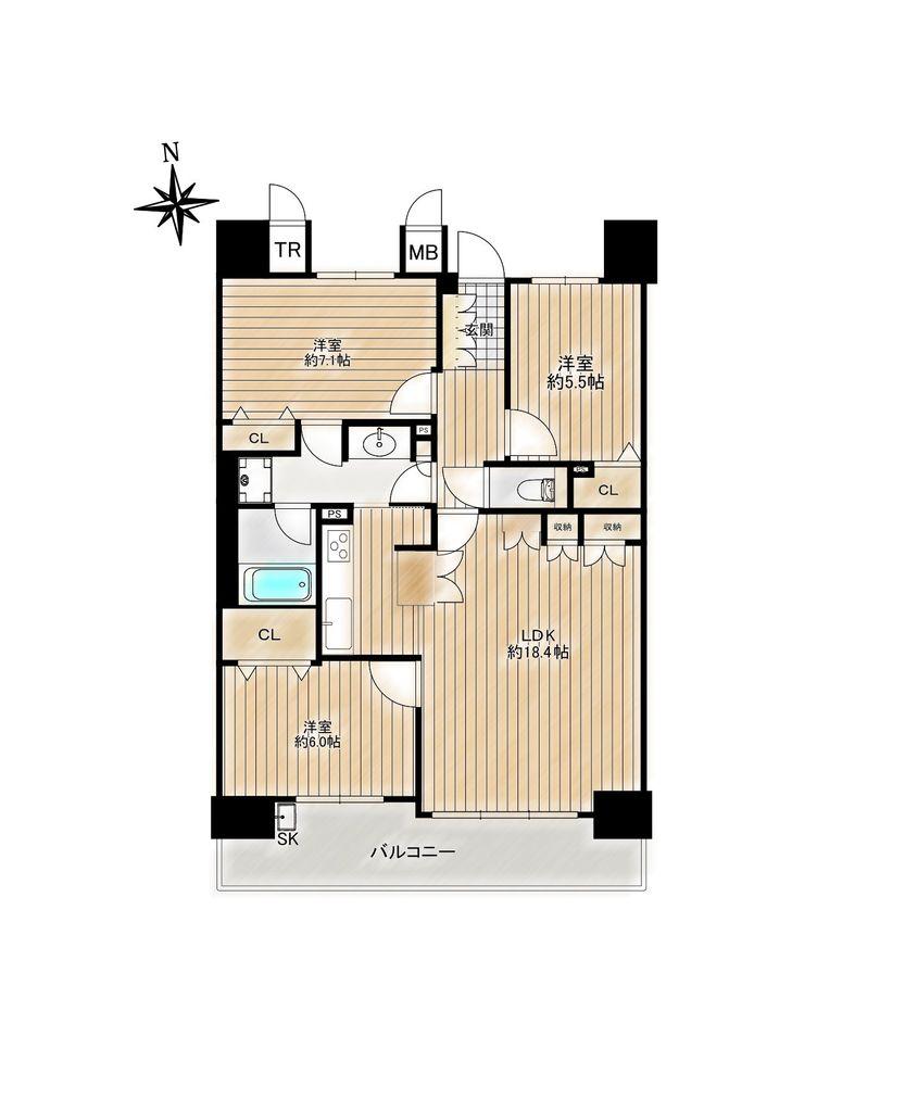 | 販売戸数/総戸数 | 1戸/33戸 | 主要採光面 | 南 | ||