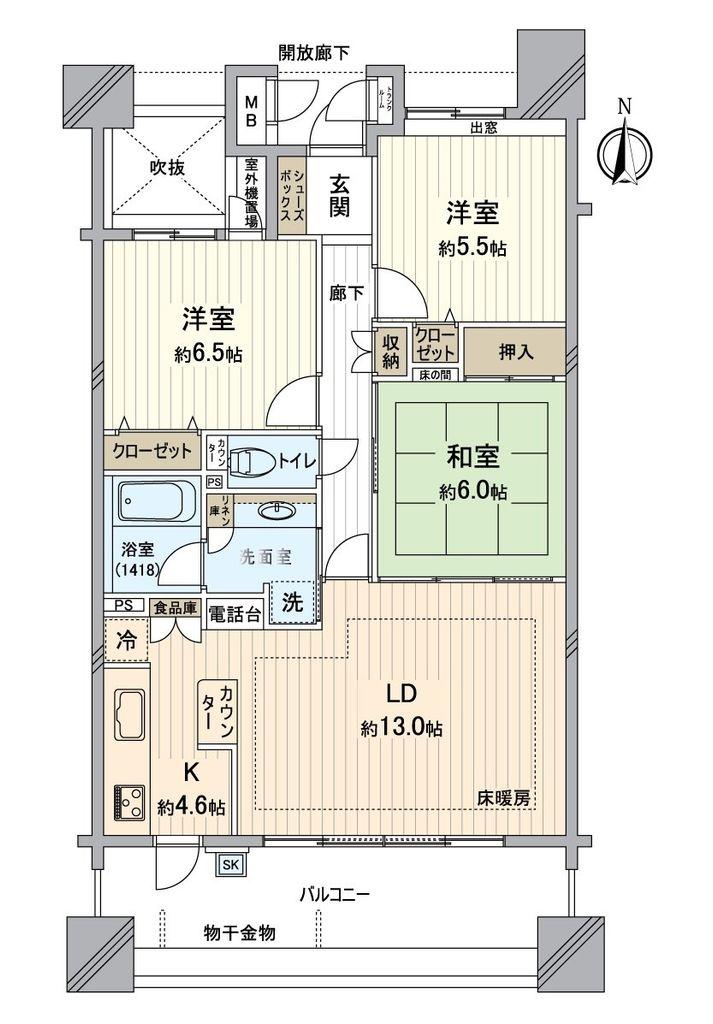 | 販売戸数/総戸数 | 1戸/115戸 | 主要採光面 | 南 | ||