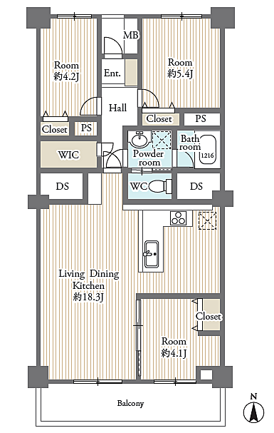 | 建物構造 | SRC(鉄骨鉄筋コンクリート) | 間取り詳細(帖) | リビングダイニングキッチン 18.3帖洋室 5.4帖洋室 4.2帖洋室 4.1帖 | ||