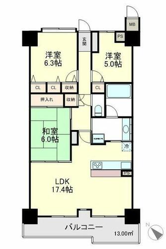 | バルコニー面積 | 13.00㎡ | 土地権利 | 所有権 | ||