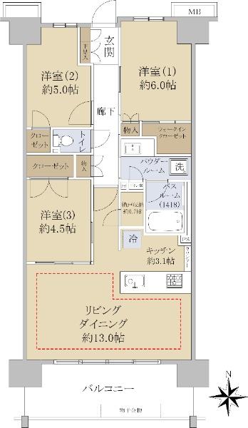 | 販売戸数/総戸数 | 1戸/571戸 | 主要採光面 | 南 | ||