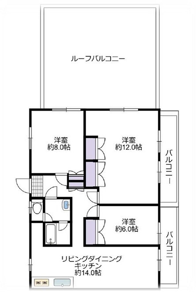 | 建物構造 | RC(鉄筋コンクリート) | 間取り詳細(帖) | リビングダイニングキッチン 14帖洋室 12帖洋室 8帖洋室 6帖 | ||