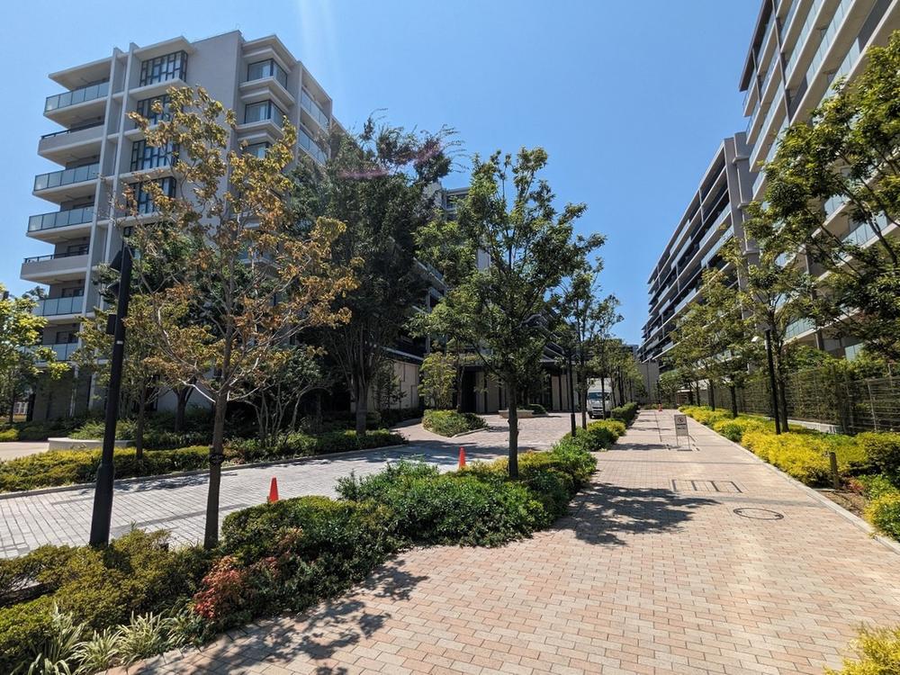 【現地外観】マンション周辺は歩道が整備されているため、小さなお子様やペットとも通行しやすそうです。詳しくは、お気軽にお問い合わせください!お待ちしております。