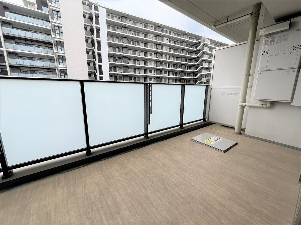 【バルコニー】陽当たり良好な南向きのバルコニーです。奥行きにゆとりがあるため、洗濯物や寝具などを広げて干すこともできます。物干し用の金物が設置されています。