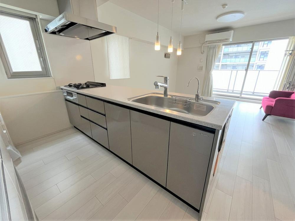【キッチン】キッチンは対面仕様。ご家族の様子を見守りながら、お料理をすることができます。シンク下の収納スペースに調理器具などを収納していただけます。ディスポーザー、浄水器付き。