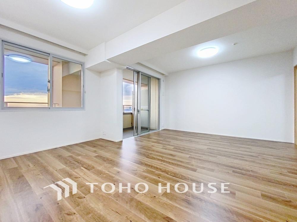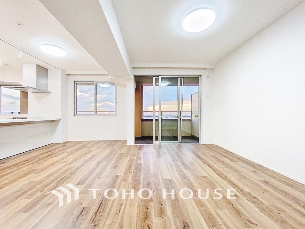 「21階×陽当り良好。」団欒の場であるリビングには、暖かな陽光が贅沢に降り注ぎます。かけがえのない一時を、明るい癒しの空間でお過ごし下さい。