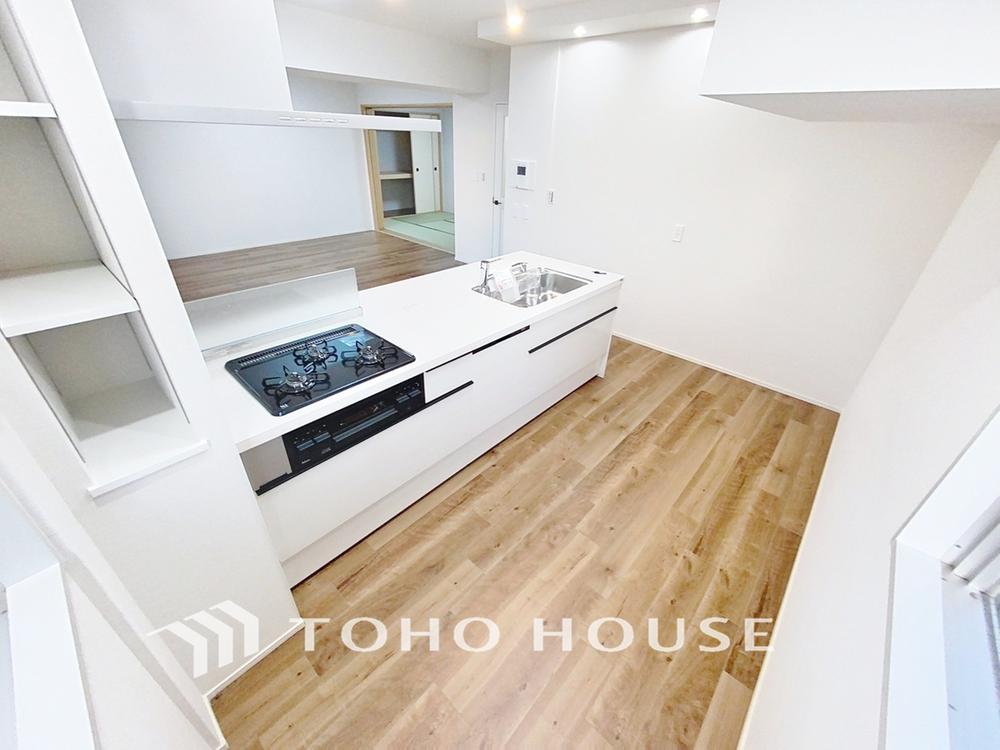「対面式キッチン仕様」キッチンスペースは、ゆとりの広さを確保。開放的な対面式キッチンなので、ご家族との会話を楽しうことはもちろん、お子様を見守りながら家事時間を進められます。