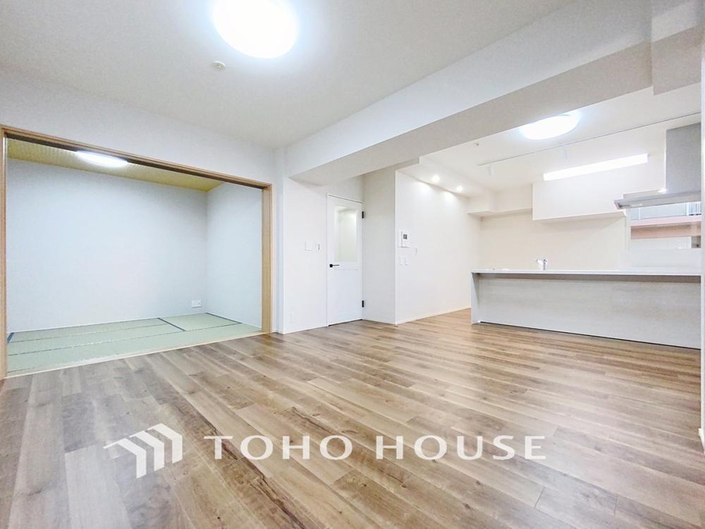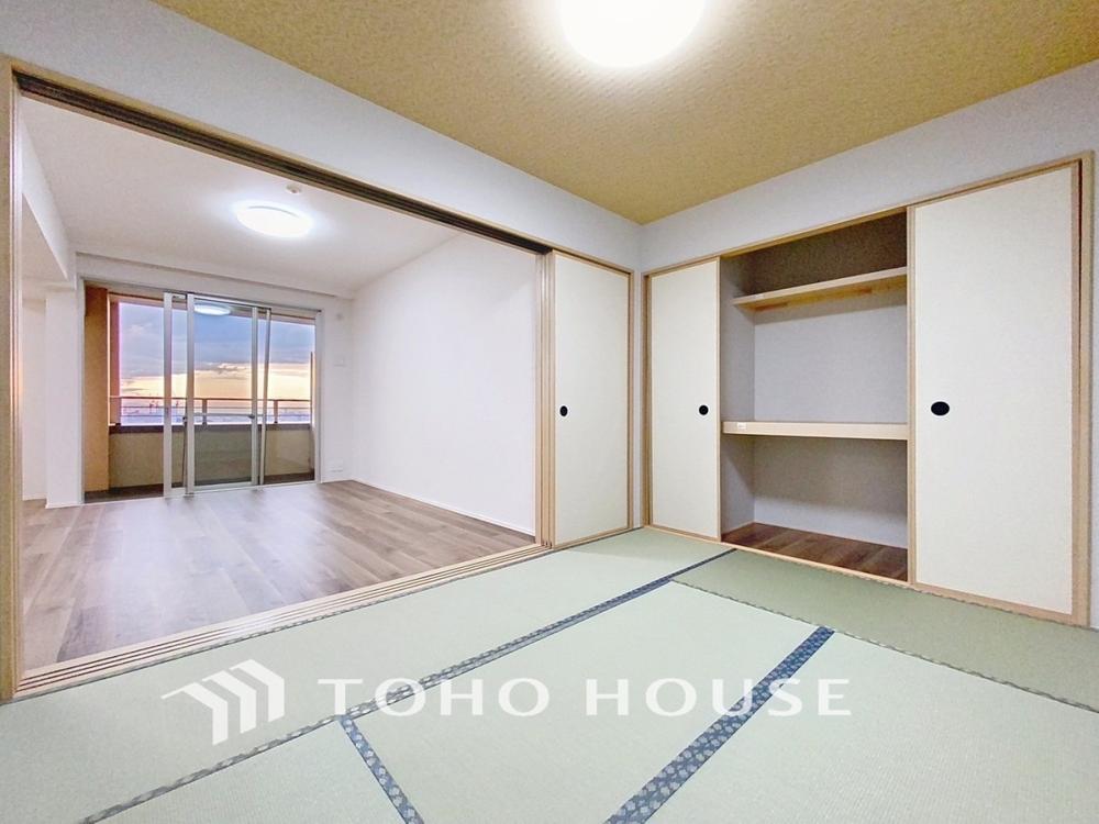 「リビング横・和室」リビングに隣接する和室。お子さまの遊び場や家事スペース、気軽に横になれる休憩スペースなど多目的に活躍します。