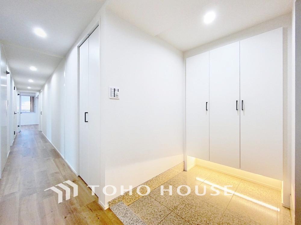 「玄関」人を迎え入れる最初の場所だからこそ、清潔感があり纏まった空間にして頂ける様にゆとりあるシューズボックスを設置しました。おでかけの時も帰宅の時も、すっきりとした玄関は気持ちが良いものです。