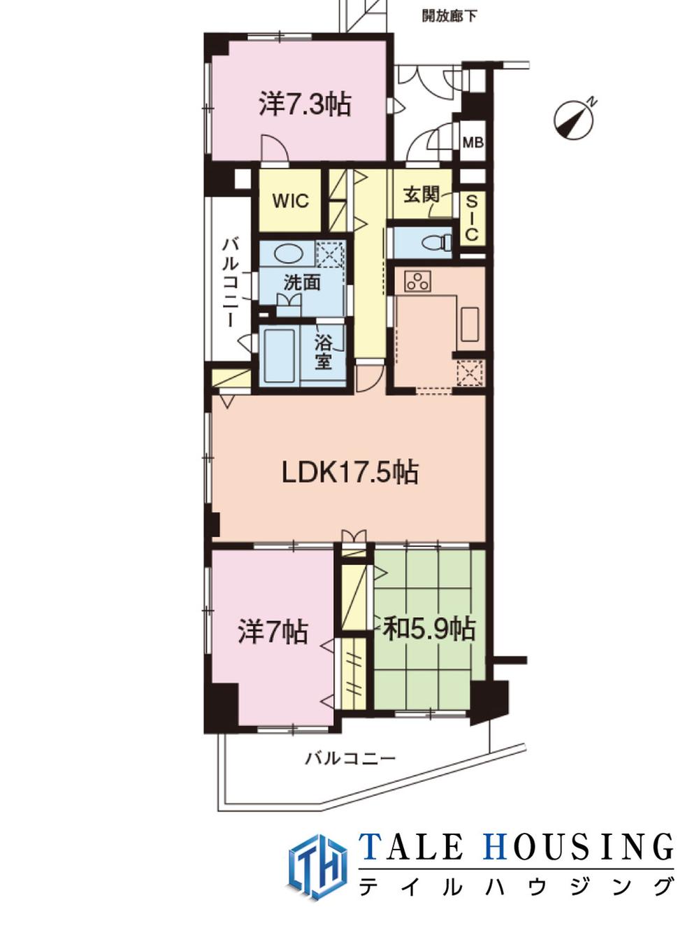 3LDK、価格4980万円、専有面積85.36㎡、バルコニー面積13.55㎡ 陽当りの良い南西角部屋で2面バルコニー付き!広々リビング、ウォークインクローゼットやシューズインクローゼットなど収納も豊富です!