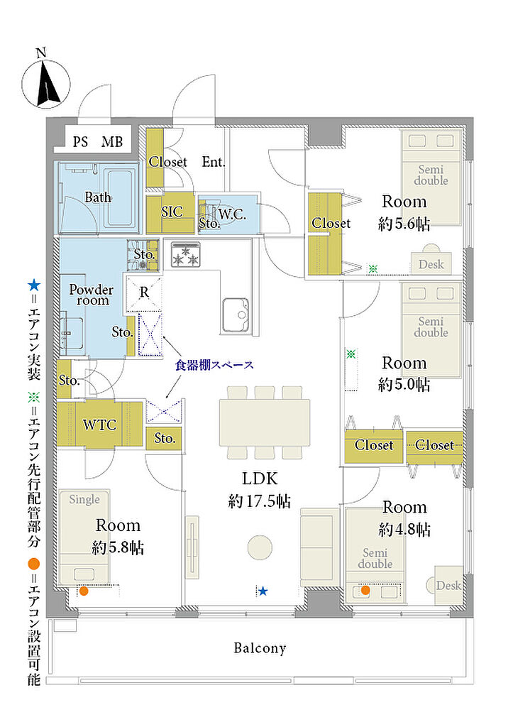 | 建物構造 | SRC(鉄骨鉄筋コンクリート) | 間取り詳細(帖) | リビングダイニングキッチン 17.5帖(7階)洋室 5.8帖(7階)洋室 5.6帖(7階)洋室 5帖(7階)洋室 4.8帖(7階) | ||