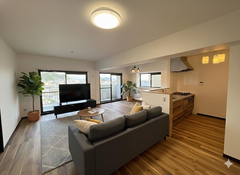 月々のローン返済額を試算ペット飼育可能 フルリノベの21畳リビング 眺望◎