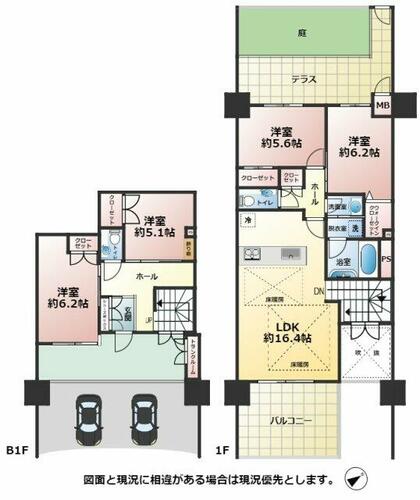 | 備考 | 令和8年1月リフォーム完了(キッチン・給湯器交換・全室クロス貼替・1F居室の床貼替・ハウスクリーニング等(排水管高圧洗浄含む))!メゾネットタイプ!駐車場2台付!ガーデンテラス有り!(使用料11150円/月・約54.71平米・約16.54坪)小学校が十分通学できる範囲にあります。北九州市立中井小学校が徒歩約9分(約650m)です。朝日がサンサンと差し込む南東向きのお部屋です。北九州市小倉北区の不動産情報をお求めなら、信頼と実績を誇る当社にお任せ下さい。経験豊富な当社スタッフがしっかりとサポート致します。・維持費等:ガーデンテラス使用料11,150円/月・管理形態/管理員の勤務形態:全部委託/巡回・他交通手段:井堀四角停歩6分・令和8年1月リフォーム完了(キッチン・給湯器交換・全室クロス貼替・1F居室の床貼替・ハウスクリーニング等(排水管高圧洗浄含む))!メゾネットタイプ!駐車場2台付!・駐輪場:有(無料)・所属階:B1~1階・リフォーム実施:2026年1月水回り(キッチン)、2026年1月内装(壁・天井(クロス・塗装等)/給湯器交換・1F居室の床貼替・ハウスクリーニング等(排水管高圧洗浄含む))、2026年1月その他(内装(キッチン 壁 全室 給湯器交換・1F居室の床貼替・ハウスクリーニング等(排水管高圧洗浄含む))) | ||||