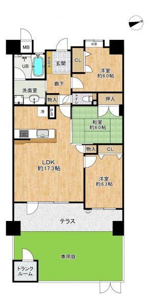 ☆築16年!LDK17帖超え!☆専用庭あり!19m2超!テラス付き!