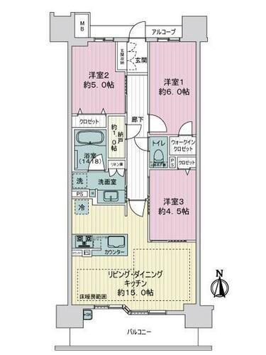 | バルコニー面積 | 9.77㎡ | 土地権利 | 所有権 | ||