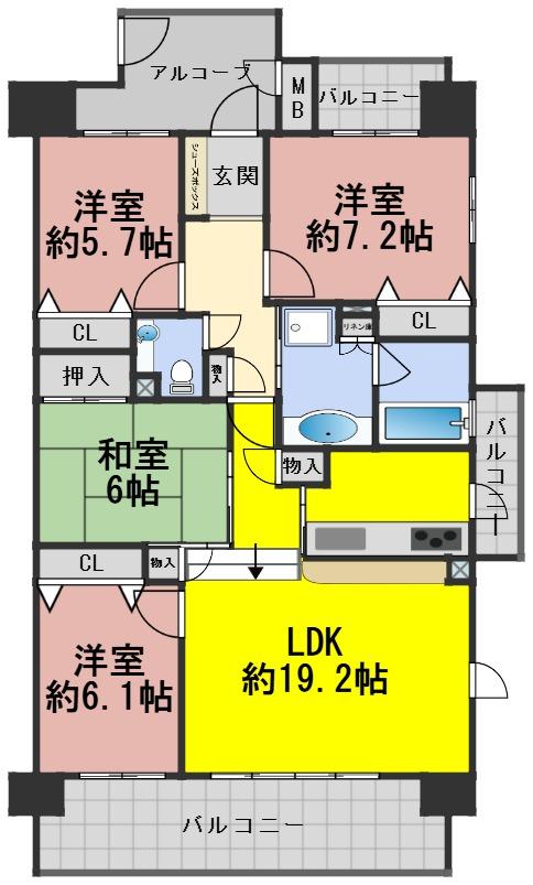 | その他面積 | バルコニー面積:19.73㎡ | 土地権利 | 所有権 | ||