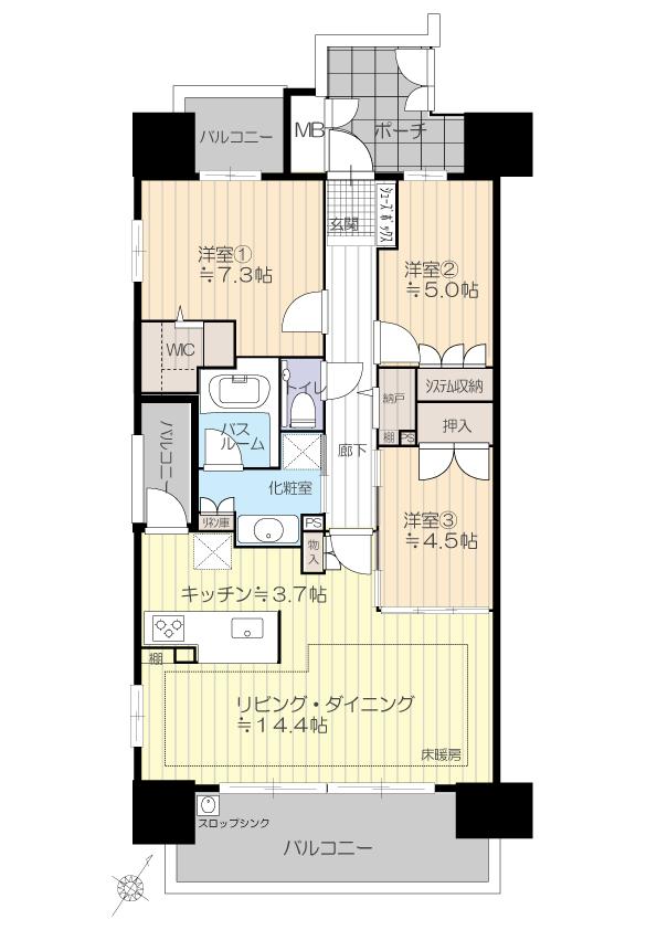 | 販売戸数/総戸数 | 1戸/56戸 | 主要採光面 | 南 | ||