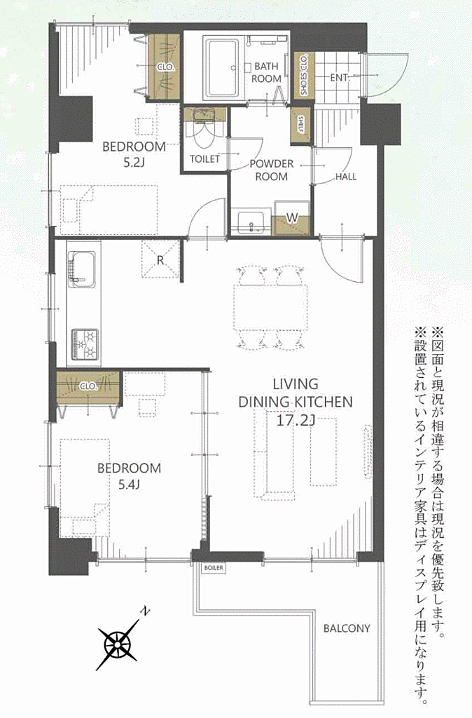 | 建物構造 | SRC(鉄骨鉄筋コンクリート) | 間取り詳細(帖) | リビングダイニングキッチン 17.2帖洋室 5.4帖洋室 5.2帖 | ||