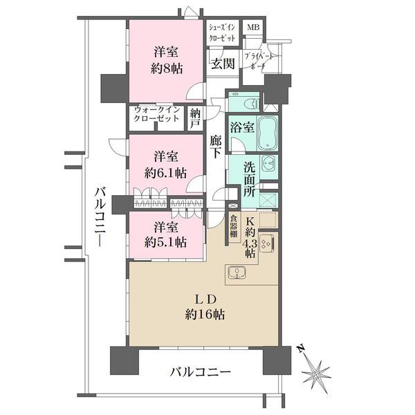 | その他面積 | バルコニー面積:44.26㎡ | 土地権利 | 所有権 | ||